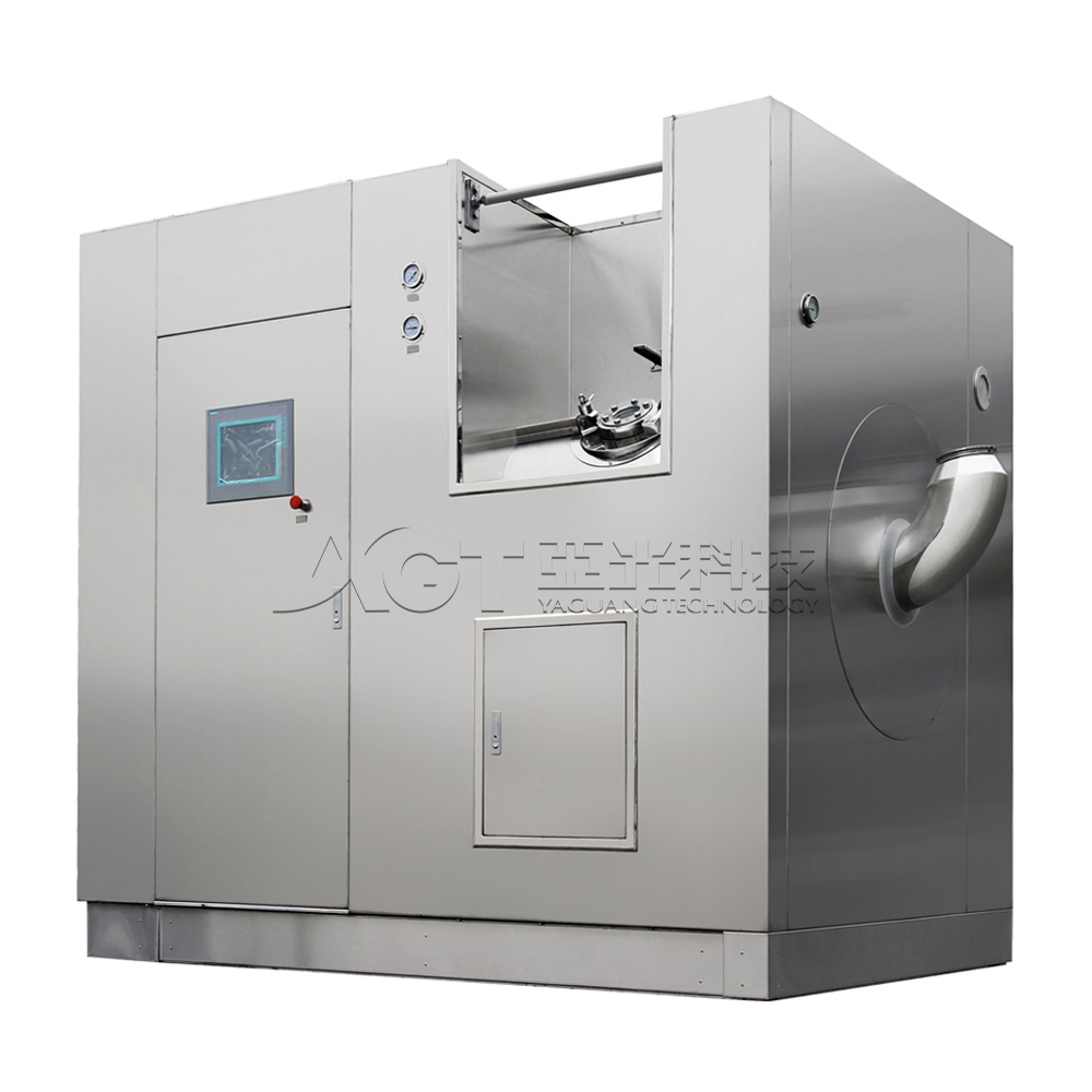 工作时,将料桶置于胶塞出料端隔离柜内,打开防夹蝶阀,然后启动出料程序开始出料,装满后关闭防夹蝶阀,将转运桶转移至层流小车